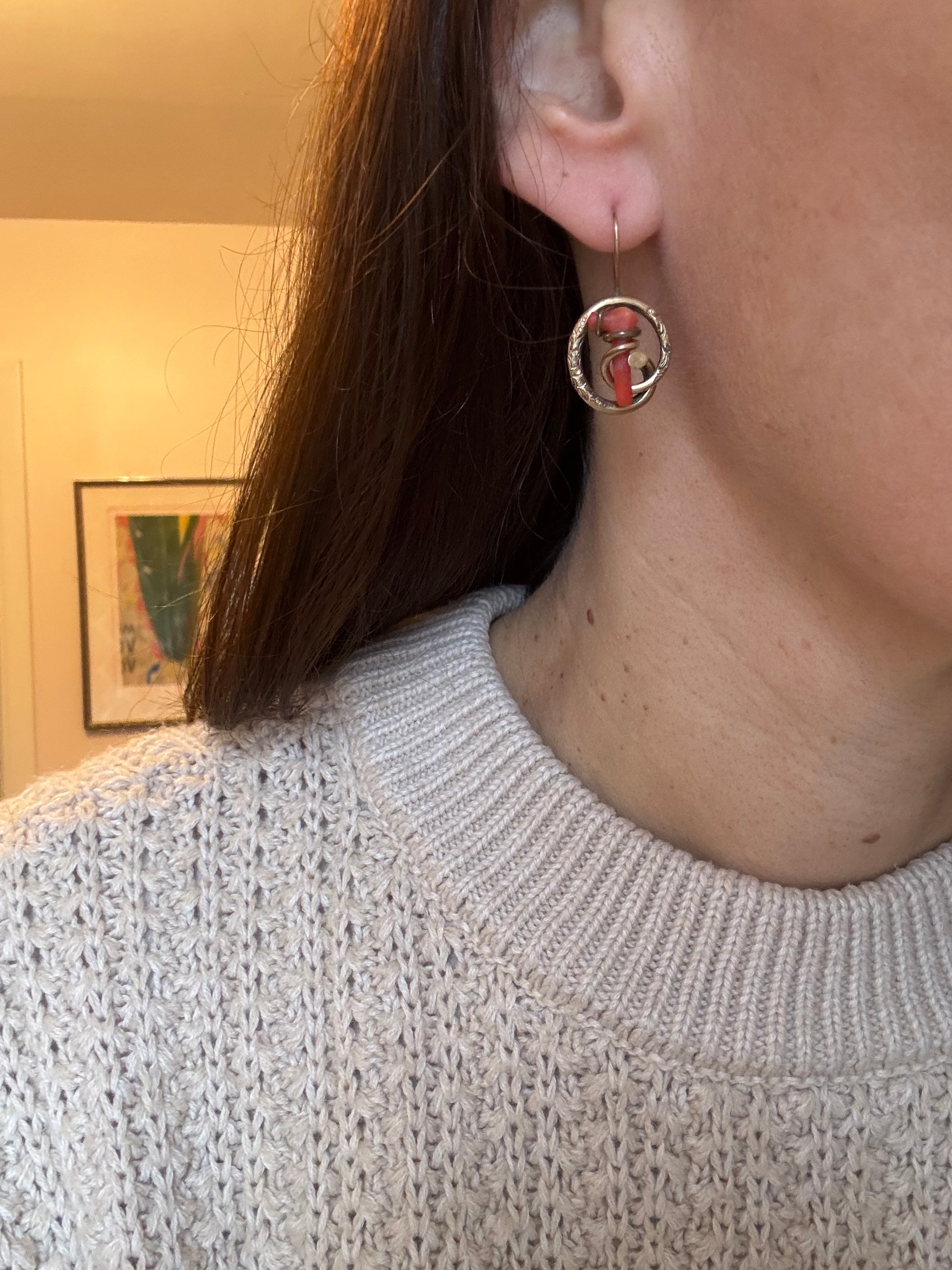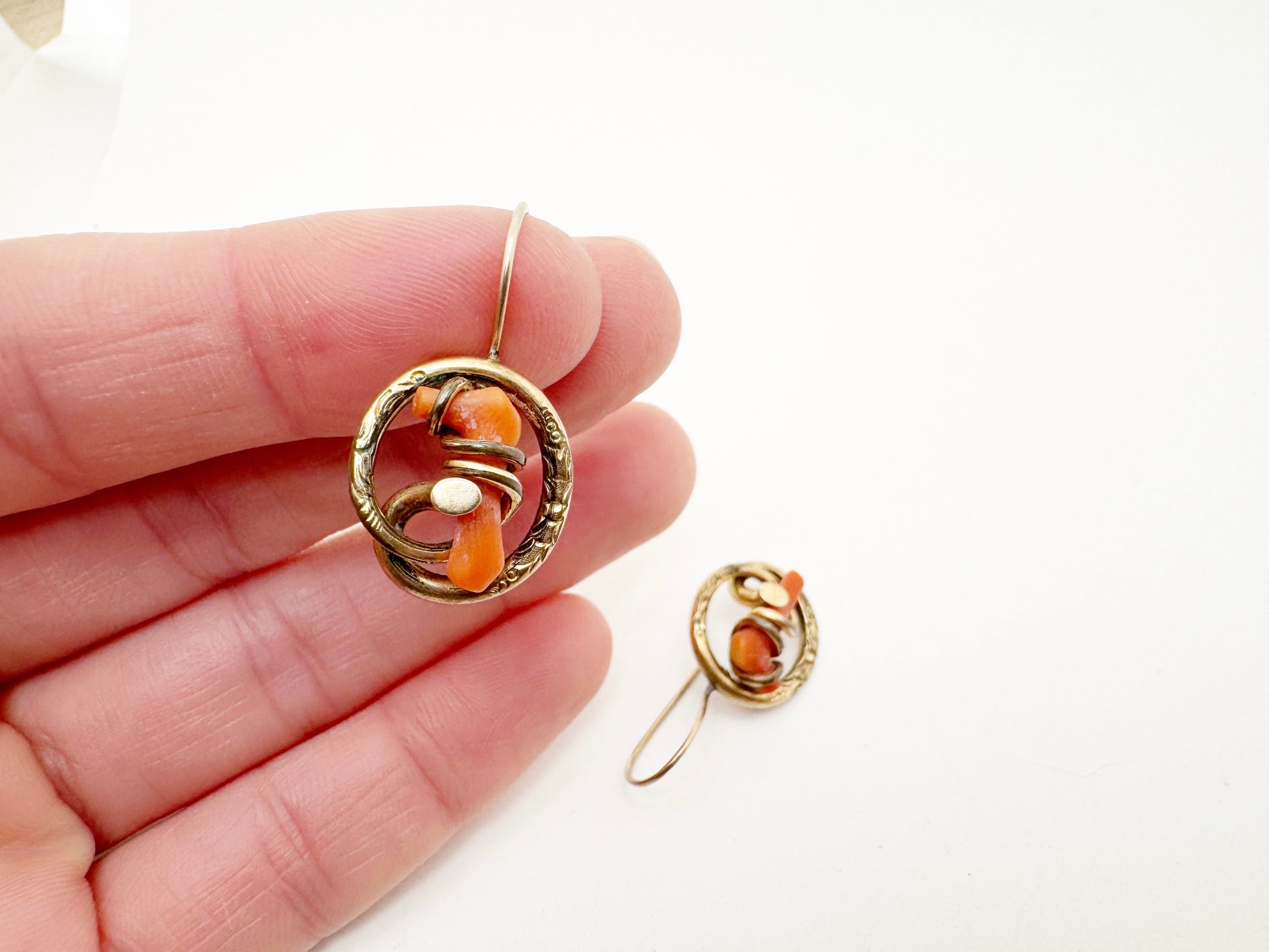 Wonderful Victorian earrings with coral branches wrapped in gold fill repousse vines.
